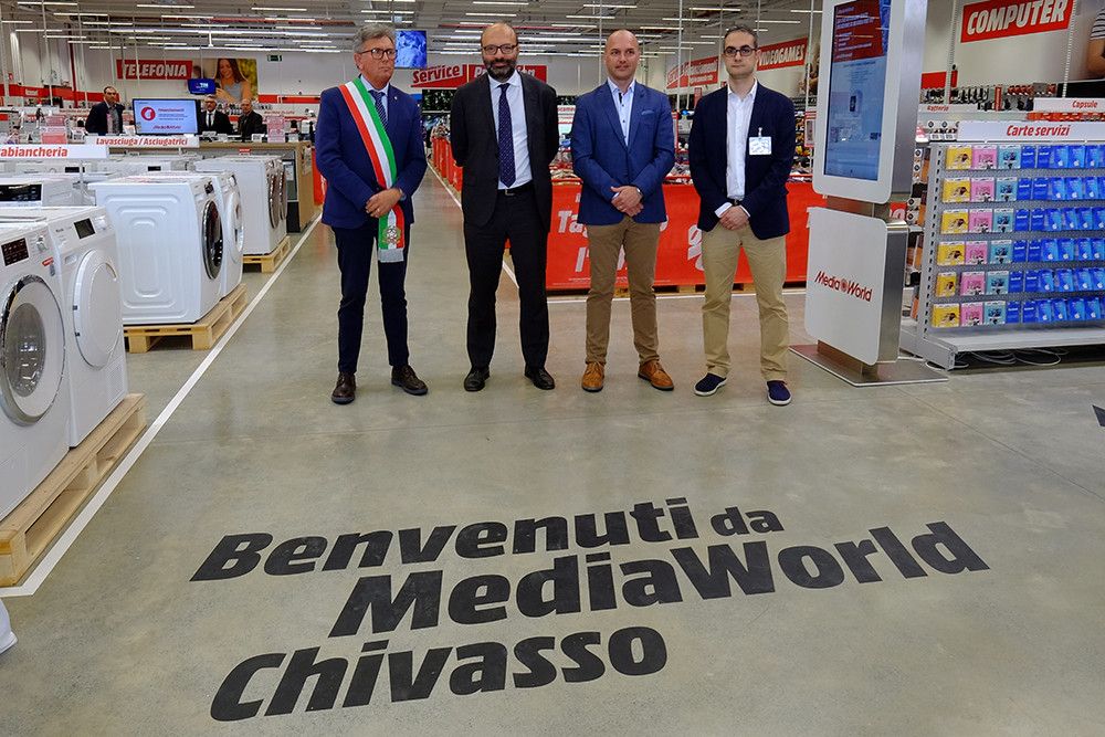 A tagliare il nastro inaugurale, insieme al COO MediaWorld Luca Bradaschia, c'erano il sindaco Caludio Castello, il responsabile regionale Giorgio Castellani e il direttore del nuovo punto vendita, Francesco Dattilo. “Un'apertura che ci auguriamo sia di buon auspicio per il territorio e per la ricaduta occupazionale” ha detto il sindaco Castello, che ha sottolineato le novità che caratterizzano lo store chivassese e anche la ricaduta occupazionale, a poche settimane dalla chiusura del punto vendita chivassese – insieme ad altri - di un altro grande brand della distribuzione nel settore dell'elettronica: Trony. Nel nuovo negozio MediaWorld gli addetti sono 22, un terzo di loro è residente a Chivasso e 12 sono nuovi assunti.
