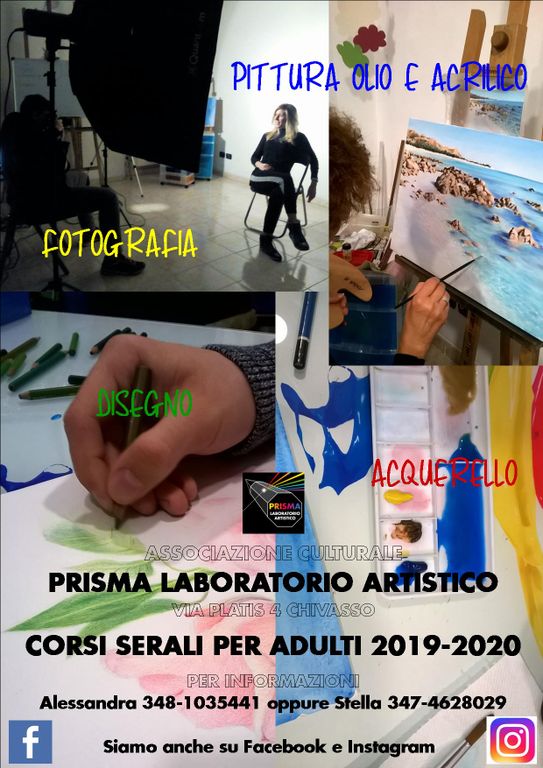 Sono aperte le iscrizioni a tutti i corsi dell’anno 2019/20 dell’associazione “Prisma Laboratorio Artistico”. Corsi per tutte le età, dai bambini più piccoli agli adulti, rivolti a tutti coloro che amano l’arte.