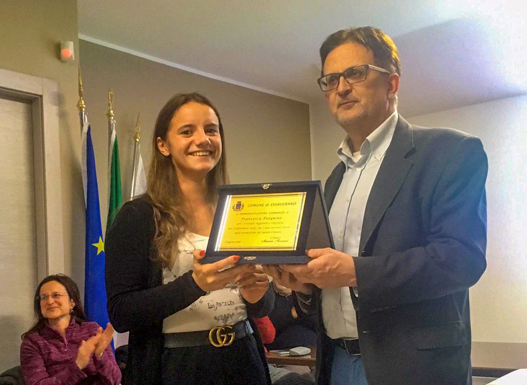 "Abbiamo scelto di premiare Francesca Pasquino - hanno detto gli amministratori - sia per i risultati sportivi di altissimo livello che ha conseguito, che danno lustro al nostro Comune, sia per ciò che i suoi risultati rappresentano per la nostra comunità. Chiunque ha praticato attività sportiva, a qualsiasi livello, sa che certi risultati non si ottengono senza un grandissimo impegno che comporta sacrificio e sudore".