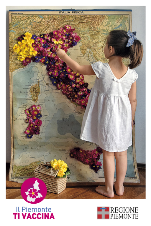 A partire dalla prossima settimana questa immagine simbolo della campagna #ilPiemontetivaccina sarà diffusa su tutto il territorio, con poster e cartoline in distribuzione negli oltre 130 punti vaccinali del Piemonte.