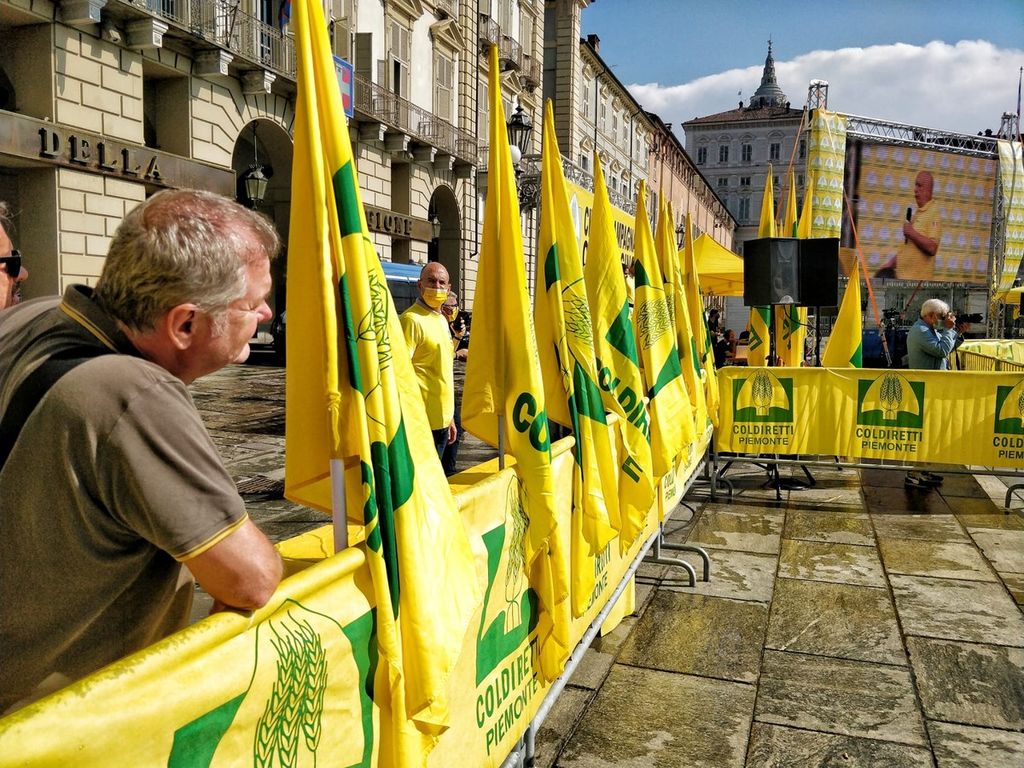 Centinaia in piazza Castello, a Torino. Nel 2021 in Piemonte +63% di segnalazioni da parte degli agricoltori