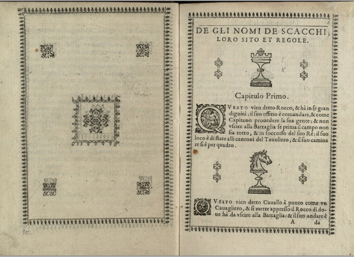Il più antico manuale di scacchi online è ora digitalizzato e pubblicato online sul sito della Città metropolitana. All’indirizzo https://www.byterfly.eu/islandora/object/libria:353491#page/12/mode/2up è consultabile il Libro nel quale si tratta della maniera di giuocar’ à scacchi, edito a Torino nel 1597 “appresso Antonio de’ Bianchi”, uno dei tesori conservati nella Biblioteca storica della Città metropolitana intitolata a Giuseppe Grosso e recentemente informatizzati grazie al laboratorio DigiBESS sito presso il CNR torinese.