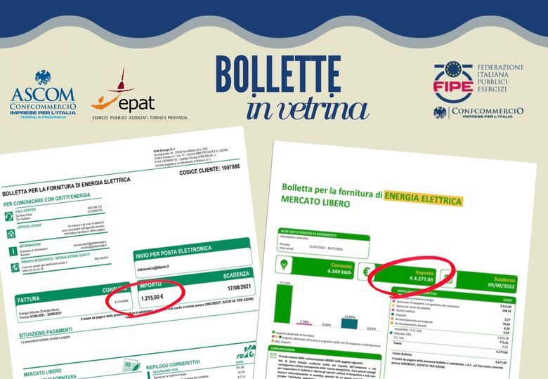 Il commercio rischia di essere strangolato dal caro energia di questi mesi ed allora Ascom Torino e Provincia lancia l'iniziativa "Bollette in vetrina" per lanciare il suo grido d'allarme per aumenti che rischiano di portare alla chiusura decine di negozi e attività.