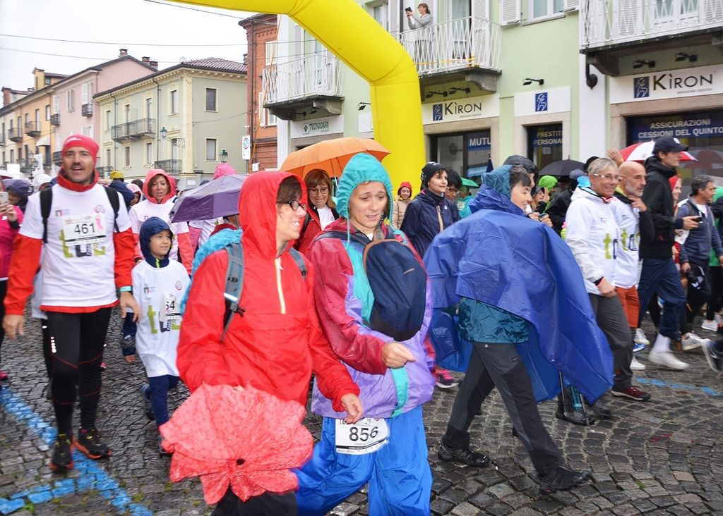 Dopo le prime tre edizioni baciate dal sole, il quarto atto del Trail delle Colline è andato in scena domenica 9 ottobre sotto una pioggia battente. Le avverse condizioni meteorologiche, se da un lato hanno costretto il Comitato Organizzatore a rivedere il percorso (soprattutto del TdC Lungo competitivo, accorciato a 22 chilometri dai 28 originari, ma anche dell’Eco-camminata in Rosa, portata a 6 chilometri invece degli 8 previsti) per garantire la sicurezza a tutti i partecipanti, dall’altro non hanno intaccato la bellissima atmosfera di festa che, come da miglior tradizione, si respira in questa manifestazione organizzata congiuntamente nel Chivassese dalla Asd Hope Running Onlus e dall’Associazione Amici dei Vigili del Fuoco Volontari di Chivasso Onlus.