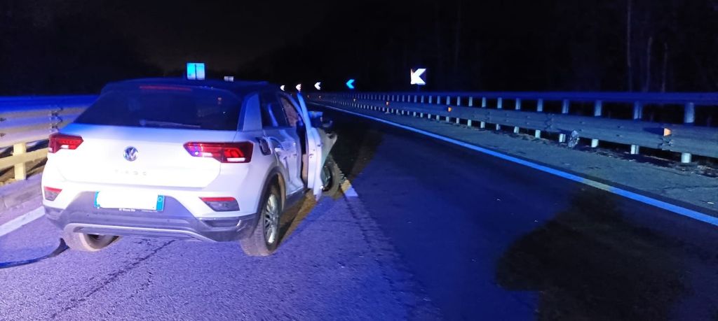 Perde il controllo dell'auto e sbatte contro il guard rail: il motore finisce a 40 metri di distanza