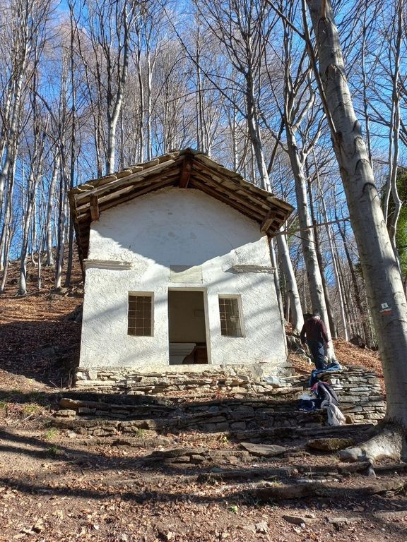 Dopo un piccolo ristoro con bevande calde a metà percorso preparato dai membri dell'associazione, sceso oramai il buio, il gruppo ha intrapreso il ripido sentiero che attraverso il bosco di faggi raggiunge il piccolo agglomerato di case in pietra ormai abbandonato del Biolaj e poco distante la piccola Cappella, illuminata per l’occasione e per la prima volta nella sua storia da fari alimentati da pannelli solari.