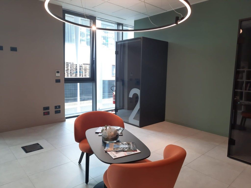 I due piani interrati dove sono stati realizzati i parcheggi pubblici e aziendali (49 posti auto) una sala riunione, uno spazio relax e servizi per i dipendenti (in futuro anche una palestra) c’erano già, quando l’area è stata acquistata. Era un progetto fermo da una decina di anni, destinato a diventare un istituto di cura per anziani.