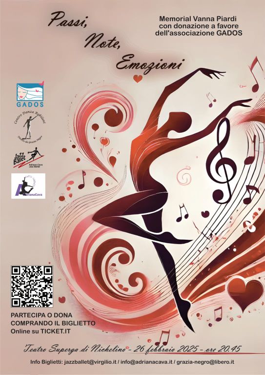 Per ricordarla e sostenere chi si occupa delle persone che soffrono, le sue amiche hanno pensato di mettere in scena lo spettacolo “Passi, Note, Emozioni”, una performance di danza dai ritmi suggestivi e coinvolgenti, in cui si alterneranno sul palcoscenico i giovani allievi della scuola Adriana Cava Jazz Ballet e i ballerini del Centro Danza Robilant di Grazia Negro. Prezioso anche il contributo organizzativo di Silvia Bosco e Rossella Noto.