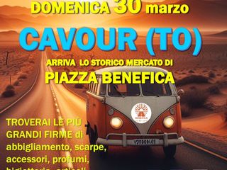 Dopo i successi nelle piazze delle città piemontesi PIAZZA BENEFICA ON THE ROAD torna a Cavour con il patrocinio del Comune di Cavour con nuove proposte, dalle 8,30 alle 19, dove gli storici stocchisti e ambulanti di Piazza Benefica porteranno le migliori marche e firme di abbigliamento, calzature, accessori, profumi, bigiotteria e articoli per la casa Made in Italy con oltre 50 espositori per accontentare tutti i gusti e le esigenze di stile e di moda dei visitatori.