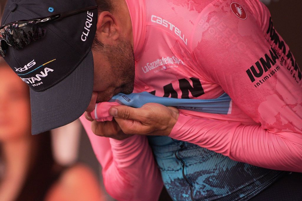 A 14 anni dalla sua prima vittoria al Giro d'Italia, a Tirano,  a cui hanno fatto seguito altre sette volte braccia al cielo al traguardo nella Corsa Rosa, Diego Ulissi ieri è scappato via in fuga con il compagno Fortunato, non è riuscito ad agguantare la vittoria. ma giocando contro il tempo ha strappato la maglia del primato a Roglic. E quel bacio alla maglia, l'esultanza all'ufficialità dopo l'arrivo del gruppo e le lacrime sono il coronamento di una carriera costruita sulla fatica, sulle fughe, sul gregariato negli anni della Uae.