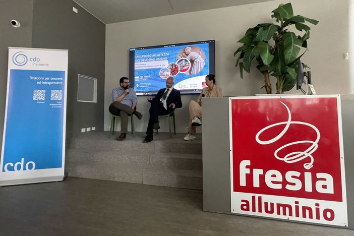 Il dibattito ha avuto luogo dopo la visita alla storica azienda leader nella progettazione e commercializzazione di sistemi ecosostenibili per serramenti in alluminio ad alta efficienza energetica guidata da Cristina Fresia, amministratore delegato della realtà economica con una storia lunga più di 50 anni. La sua visione imprenditoriale, che coniuga innovazione, sostenibilità ambientale e valorizzazione del capitale umano, ha reso Fresia Alluminio un modello di successo nel panorama industriale italiano.