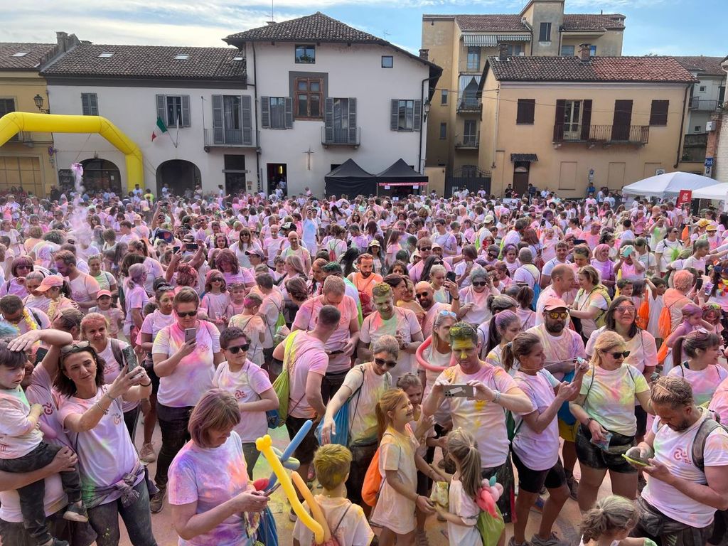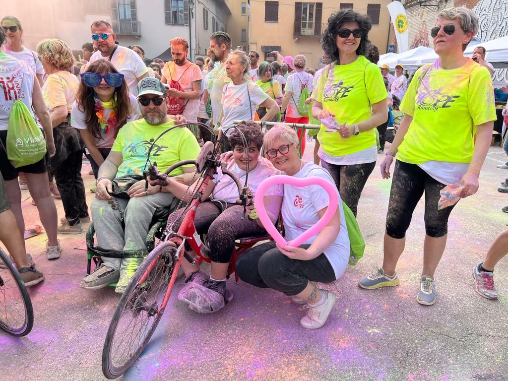 Sabato 24 maggio la Hope Color ha letteralmente inondato di colori ed entusiasmo la città di Chivasso. Una giornata indimenticabile quella vissuta dai volontari della Hope Running e della Volley Fortitudo Chivasso, le due associazioni che hanno organizzato congiuntamente questa corsa non competitiva/camminata inclusiva di 5 chilometri, in partnership con XXL Cafè e con Ascom Confcommercio Chivasso e con il patrocinio del Ministro per le Disabilità Alessandra Locatelli, della Città di Chivasso e del Comitato Regionale Csen Piemonte, e dai 1200 partecipanti che prima hanno gremito piazza del Castello e poi colorato i parchi cittadini e le vie del centro.