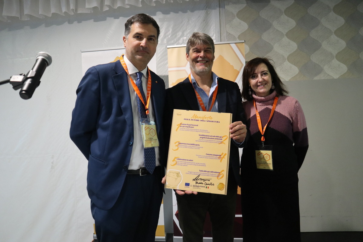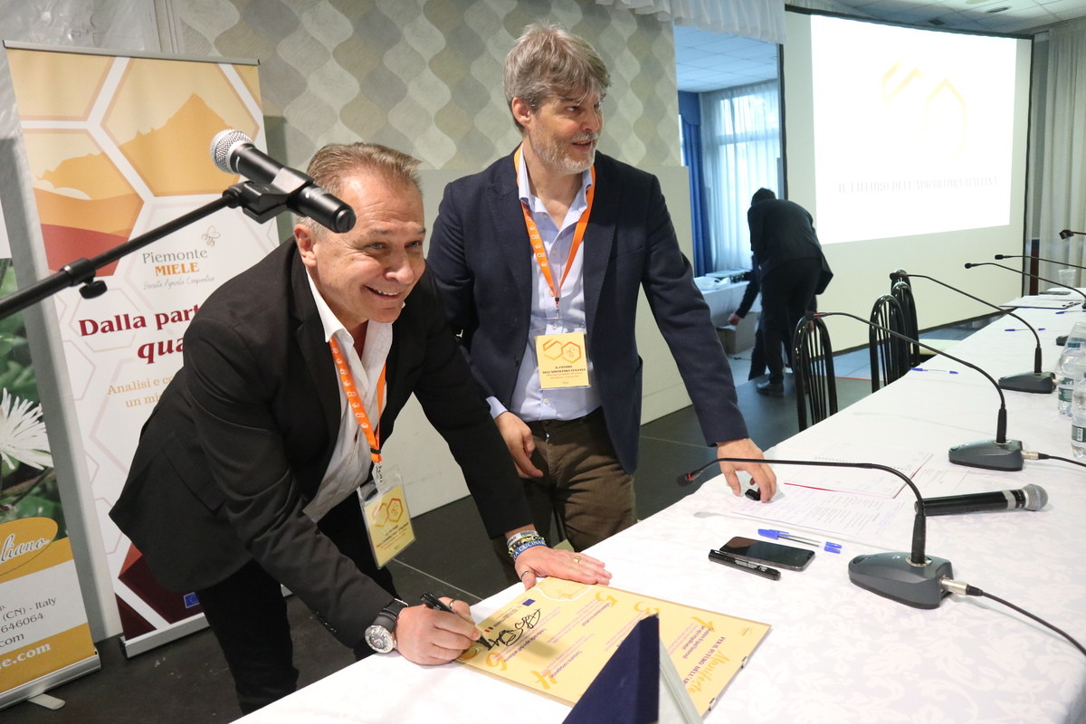 Partecipato anche il convegno “Tavola rotonda: Il futuro dell’Apicoltura Italiana, mercato globale, SQN (Sistema della qualità nazionale) e nuova PAC (Piano Agroalimentare Comune)” con relatori, oltre a Colombo e Mattio, Riccardo Babini, presidente Mic (Miele in Cooperativa), Giuseppe Cefalo, presidente Unaapi (Unione nazionale apicoltori italiani), Raffaele Cirone, presidente Fai (Federazione apicoltori italiani), Gianfranco Termini, presidente Osservatorio Nazionale dei Miele.