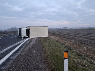 Tremendo scontro sull'autostrada A5 Torino - Aosta, tra Volpiano e San Giorgio Canavese, in direzione del capoluogo valdostano. Nel sinistro sono coinvolti due autocarri che, a seguito dell'impatto, si sono entrambi ribaltati sul fianco.
